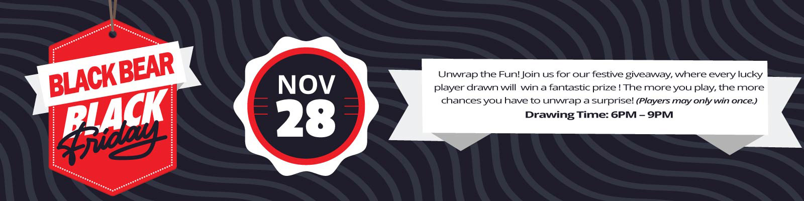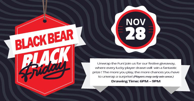 Slot players can earn drawings entries for a chance to win some high-tech prizes just in time for the holidays! Come celebrate Black Friday at the Bear!
